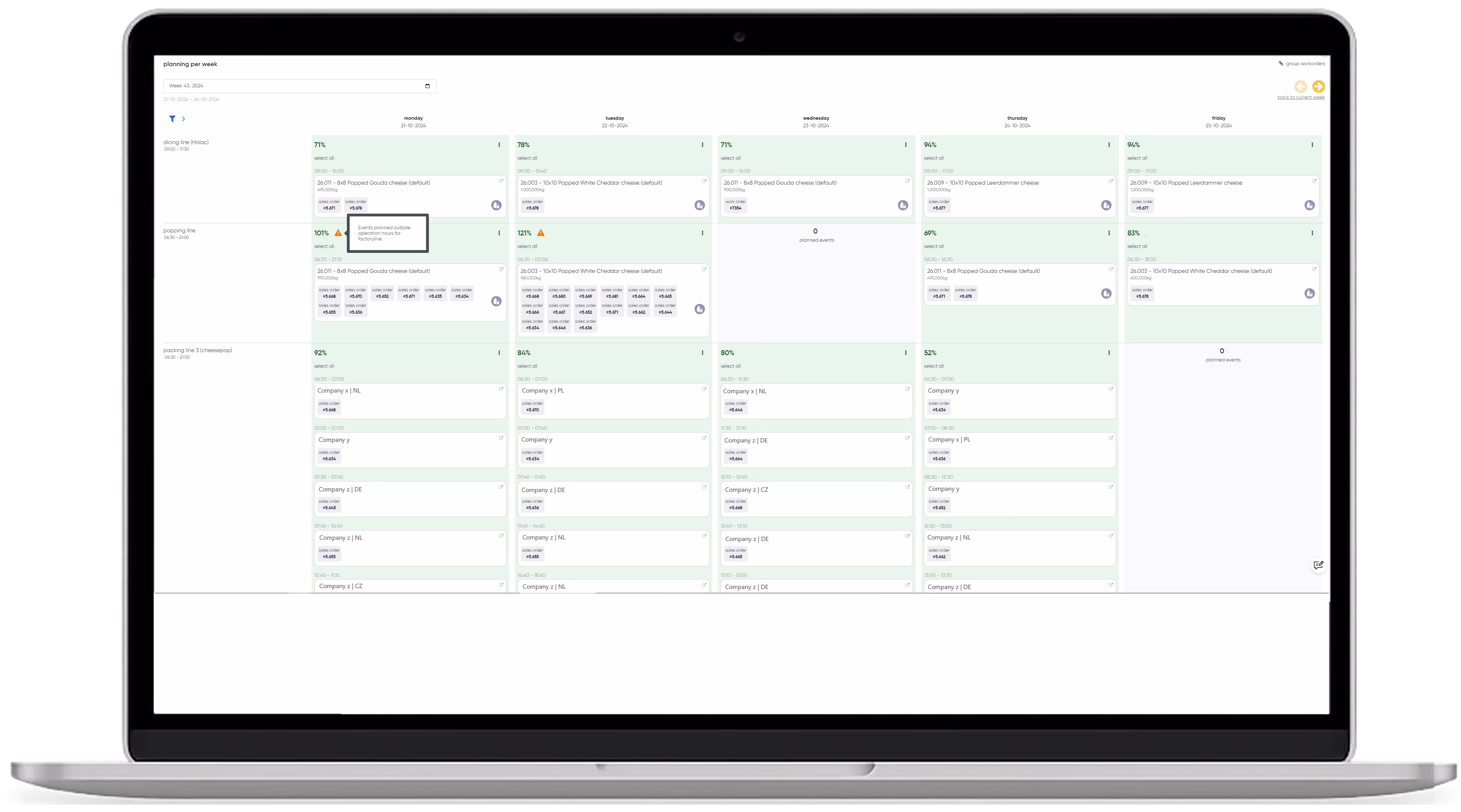 The expansion of the factory floor with multiple production lines, machines, and products made planning more complex. This came with a desire to optimize planning based on cleaning, machine configuration, and agreed delivery dates.
