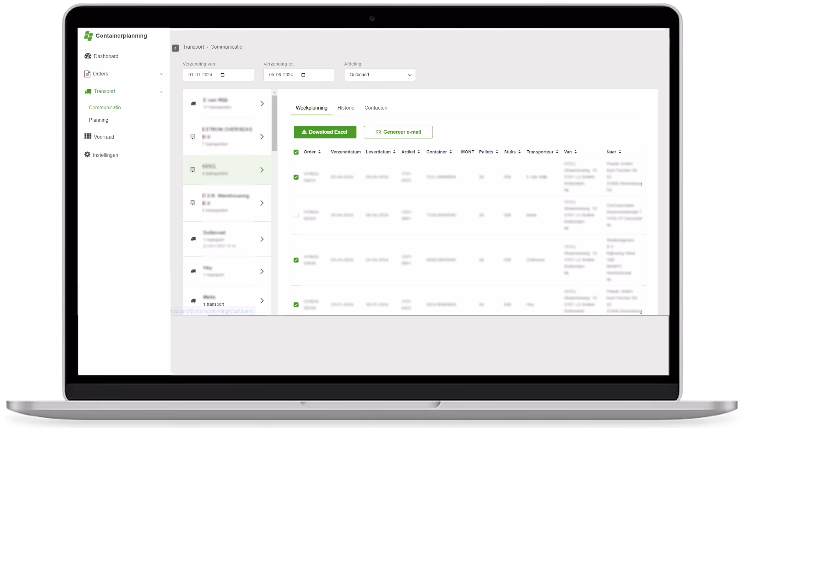 Every day, all logistics partners involved must be informed about planned transports with often changing details about the pick-up or delivery locations. This meant extracting a lot of data from Excel and combining it and then sharing it in emails. But also to keep an overview of what has been sent and what has not already been sent.